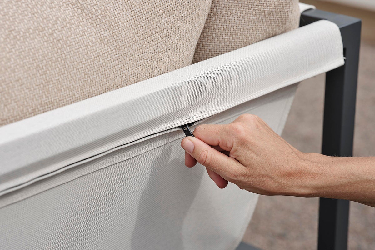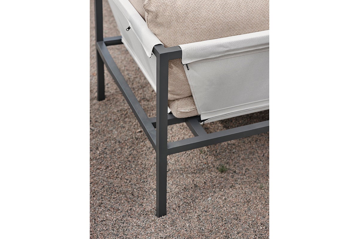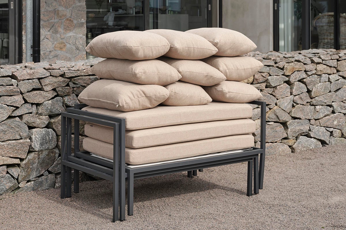 Allie – alt i én boks. Opplev den perfekte blandingen av enkelhet og sofistikert design, der hvert element – fra aluminiumsrammen til det livlige tekstilsetet. Komfortable puter i et moderne narvfarget stoff – alt kommer pent pakket i en enkelt eske. Det har aldri vært enklere å sette sammen din utendørs oase, slik at du kan fokusere på å nyte plassen din i stedet for på settet. Den smarte konstruksjonen gjør den også enkel å oppbevare om vinteren.