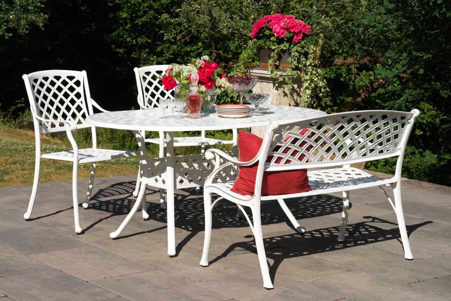 Arras er en serie i støpt aluminium hvor klassisk estetikk kombinert med moderne materialer skaper en stil som du kan ha glede av i mange år. Solide og solide møbler som ikke ruster.