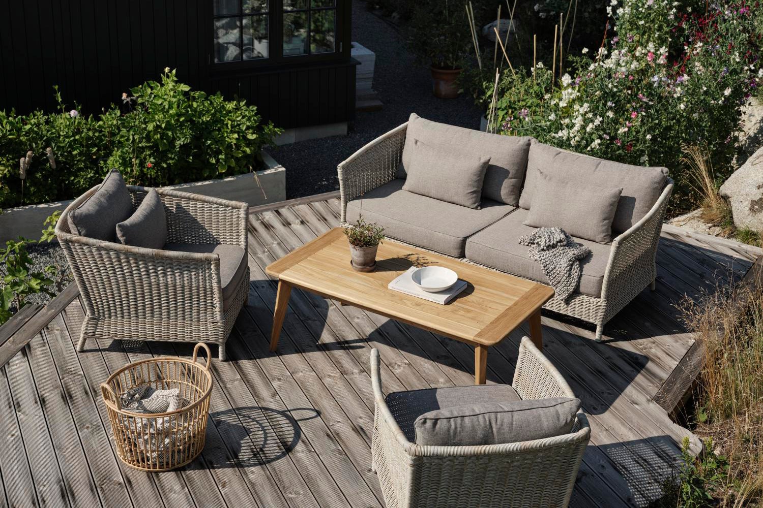En gruppe utemøbler i håndvevd syntetisk rotting som gir et naturlig og klassisk preg. Takket være solide materialer og fokus på komfort og funksjon, har du her en serie utemøbler som passer til alle verandaer, terrasser og hager. Brafab salongbord i Taverny-, Vannes- eller Warm-seriene er godt egnet. Tidløs eleganse er ordet!