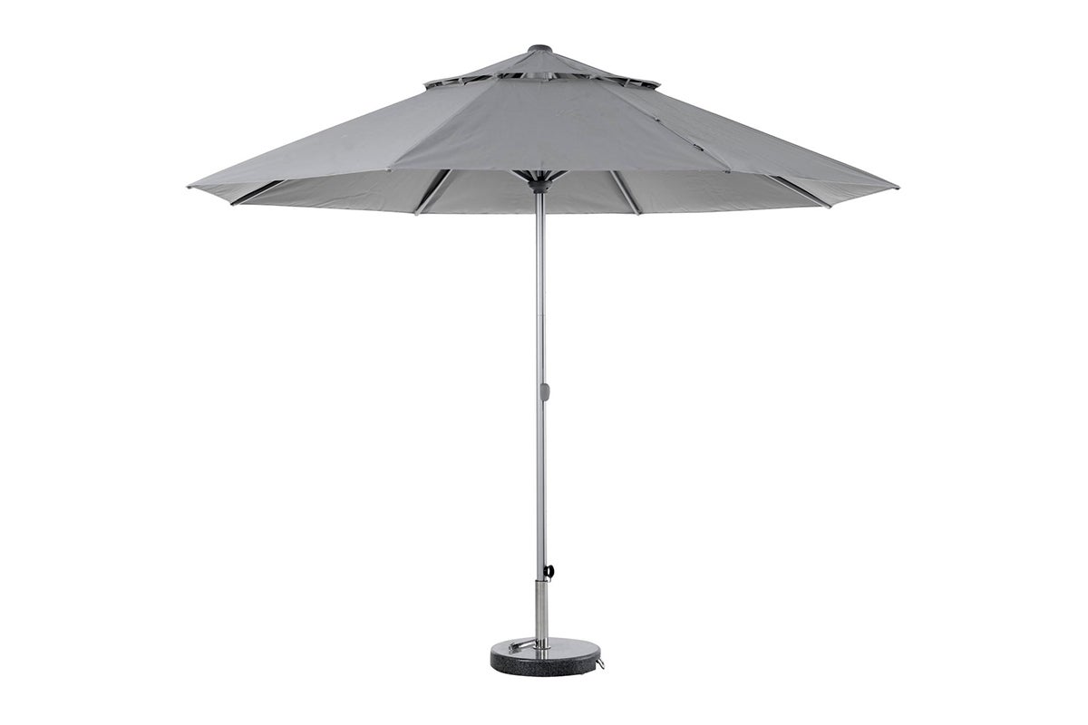Den store premium parasollen Bolano har en sjenerøs diameter på 3,3 m. Laget av høykvalitets 250 g O'Bravia-stoff (100 % solutiondyed polyester), gir den holdbarhet og langvarig farge. Aluminiumsstang med enkel, trinnløs kontroll (Easy Track).