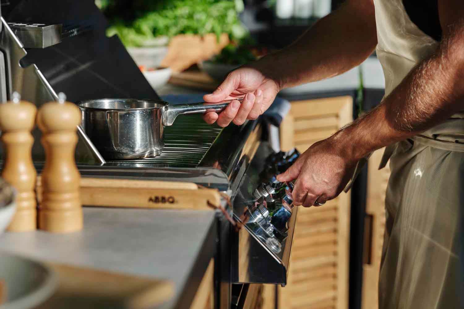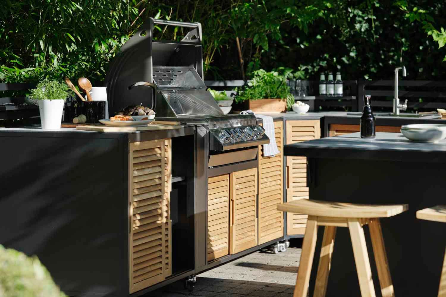 utekjøkken, Svart/teak