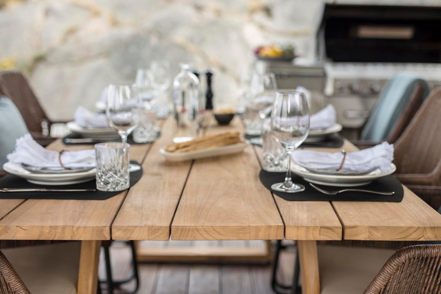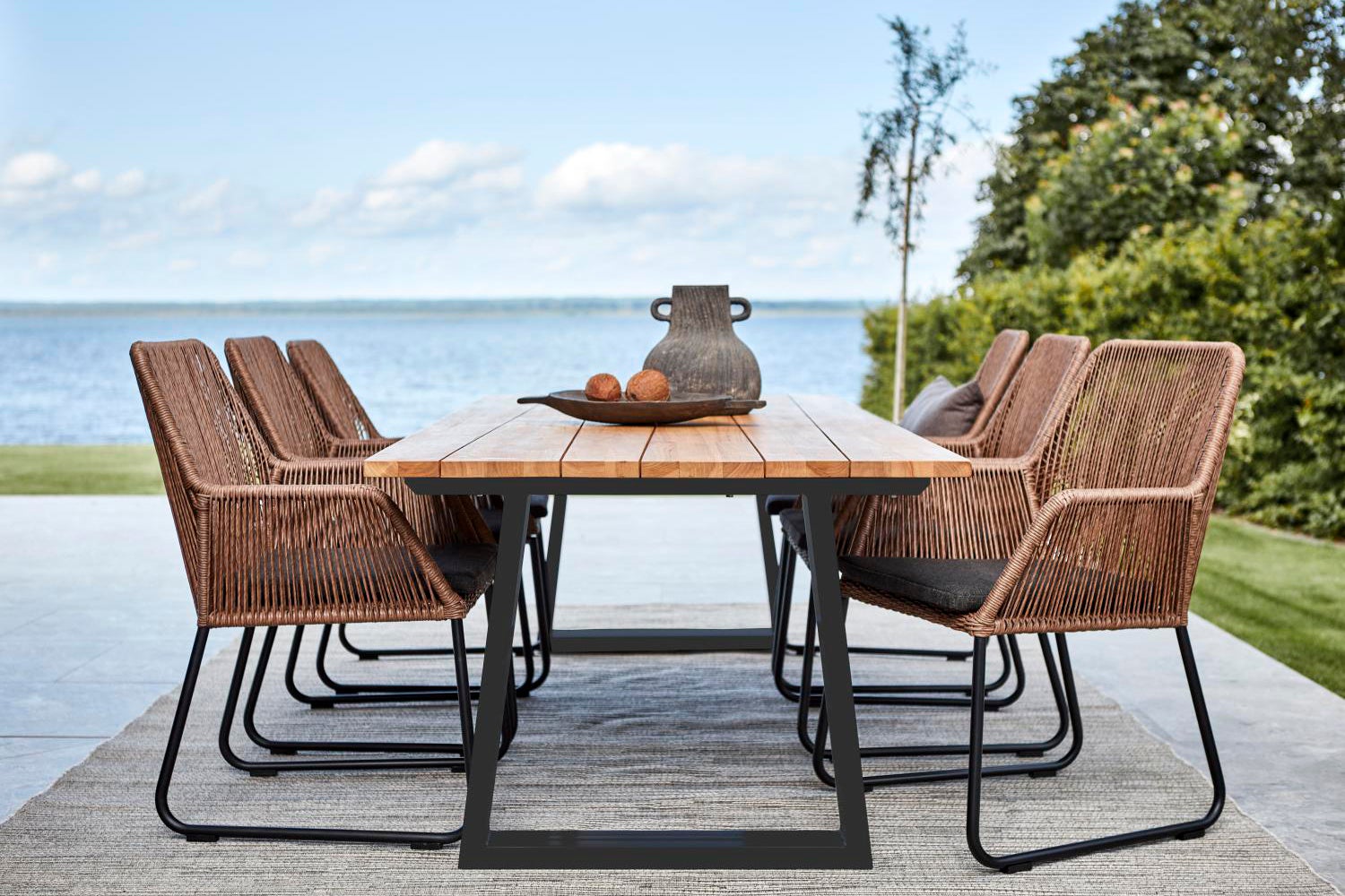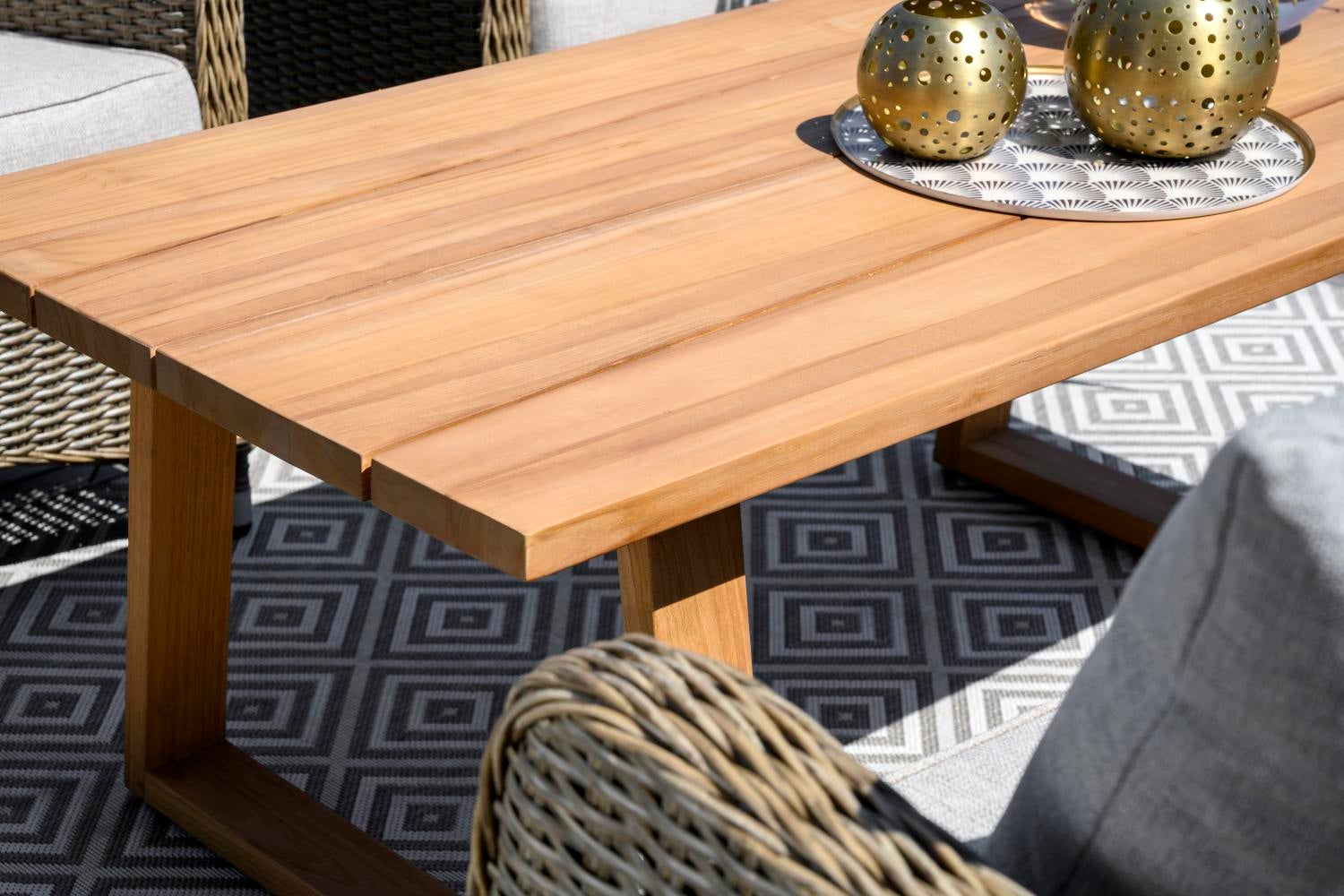 Et vakkert moderne teakbord preget av en bordplate i et unikt design og dyktig håndverk. Enkel å plassere og sjenerøs.