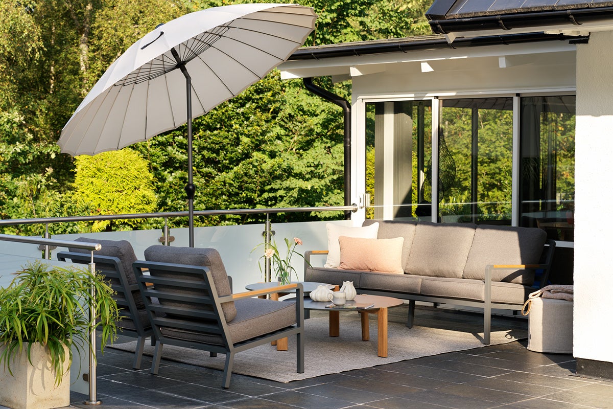 En moderne loungeserie med et sofistikert uttrykk. Det dype setet og putene med vannavstøtende TPU-fôr gir varig komfort og praktisk. Den sjenerøse skråningen forsterker følelsen av avslapning, mens solide teakinnlegg på armlenene gir naturlig varme og en elegant kontrast til aluminiumsrammen. Serien kan også stables for enkel oppbevaring.