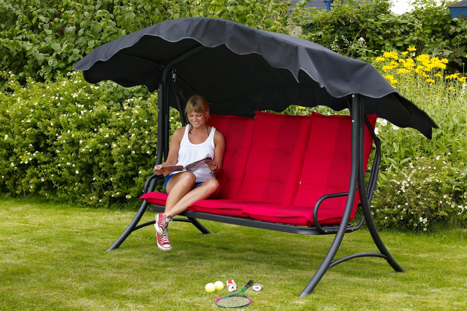 Prag-hengekøyen er tilgjengelig i flere forskjellige farger. Stativet er galvanisert og pulverlakkert. Tak og puter selges separat.