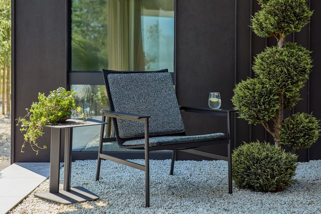 Soro gir komfort – enten du står alene eller som en del av en sofagruppe. Den innbydende lenestolen har brede armlener og myke puter i stoff med fjærende fyll. Ryggputen holdes på plass med vektstøtte, og setet i textilene gir en luftig følelse. Resultatet er en lenestol som alltid inviterer deg til å slappe av.