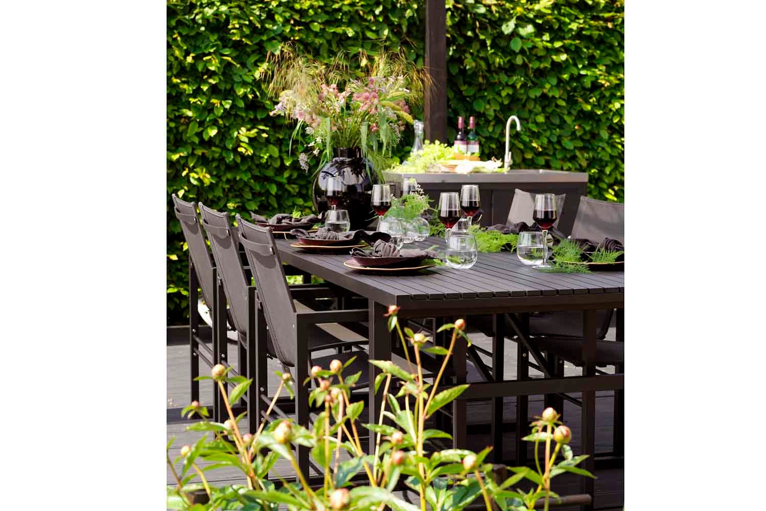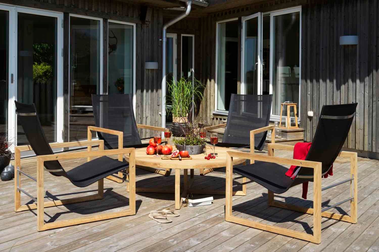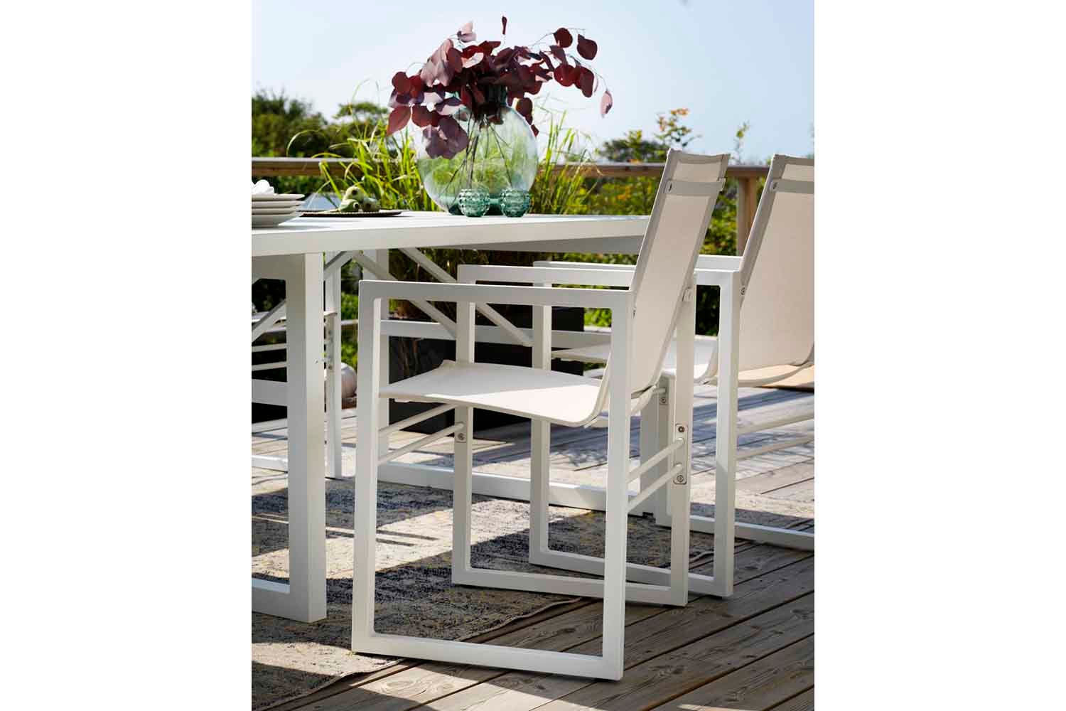Det nordiske formspråket og det elegante, moderne designet kjennetegner denne serien. Fra det sjenerøse spisebordet med plass til familie og venner til komfortable stoler, sidebord, lenestoler og mye mer som vil gjøre terrassen din til det perfekte stedet for avslapning og sosialt samvær. Mange av de forskjellige enhetene er tilgjengelige i både aluminium kombinert med tekstil og teak kombinert med rustfritt stål. Design Dick Björk.