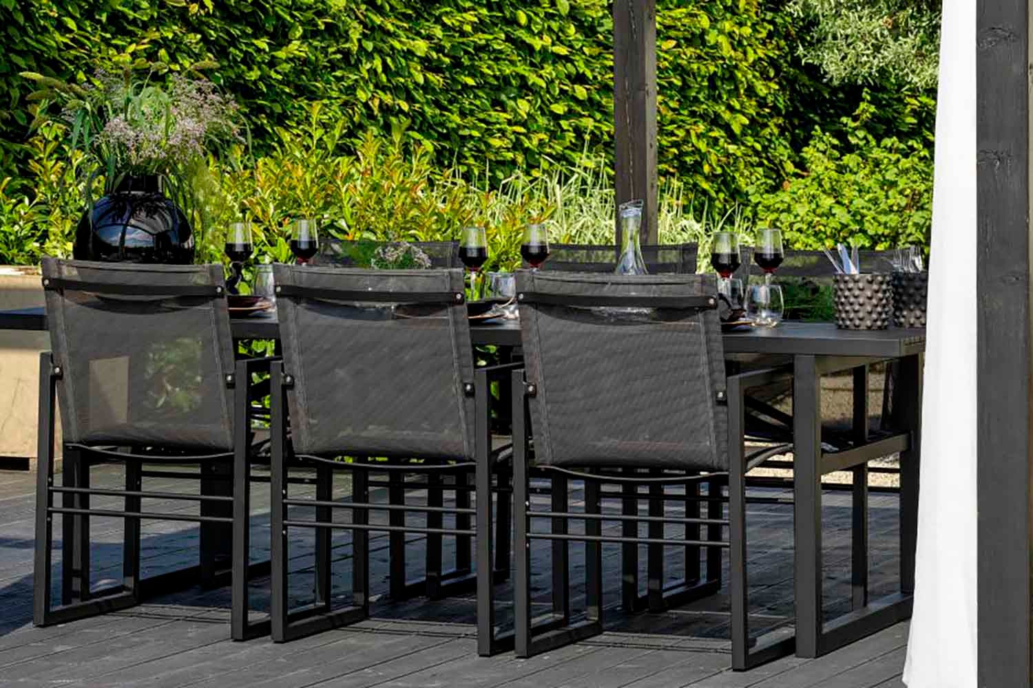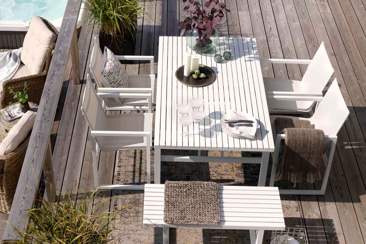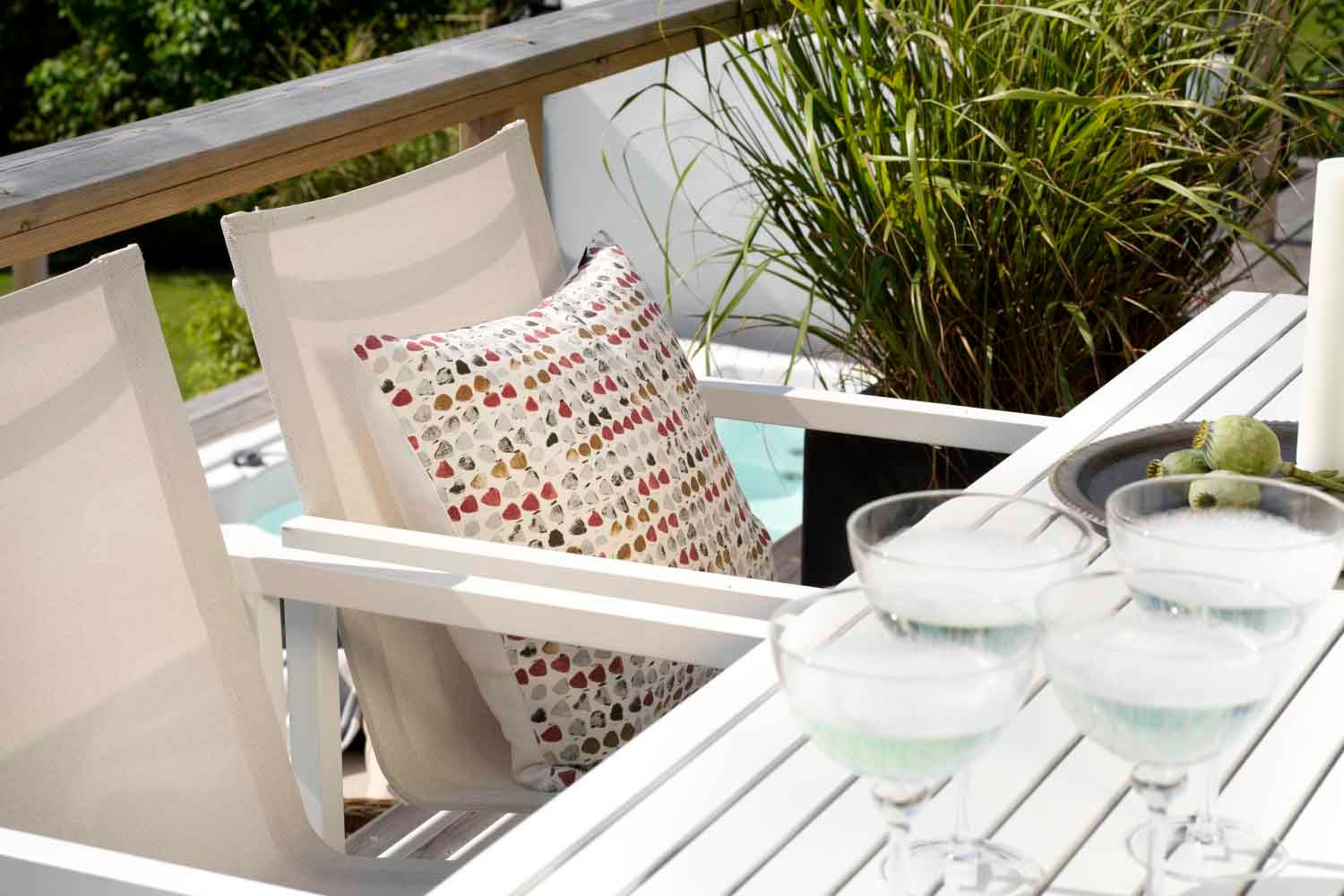 Det nordiske formspråket og det elegante, moderne designet kjennetegner denne serien. Fra det sjenerøse spisebordet med plass til familie og venner til komfortable stoler, sidebord, lenestoler og mye mer som vil gjøre terrassen din til det perfekte stedet for avslapning og sosialt samvær. Mange av de forskjellige enhetene er tilgjengelige i både aluminium kombinert med tekstil og teak kombinert med rustfritt stål. Design Dick Björk.