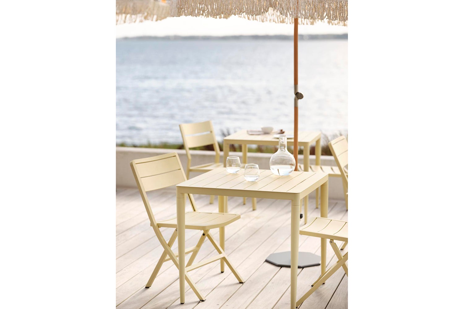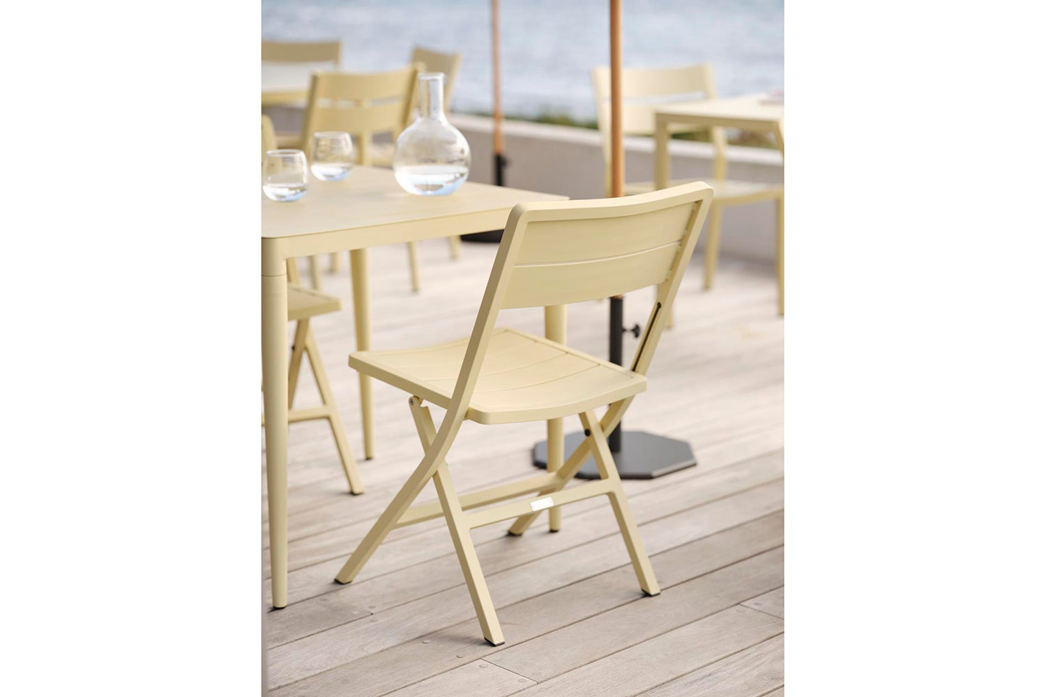 Wilkie er en serie i aluminium som består av moderne, sammenleggbare stoler og bord i nydelige farger. Perfekt som ekstra møbel å ta ut ved behov, da de tar liten plass når de er brettet.