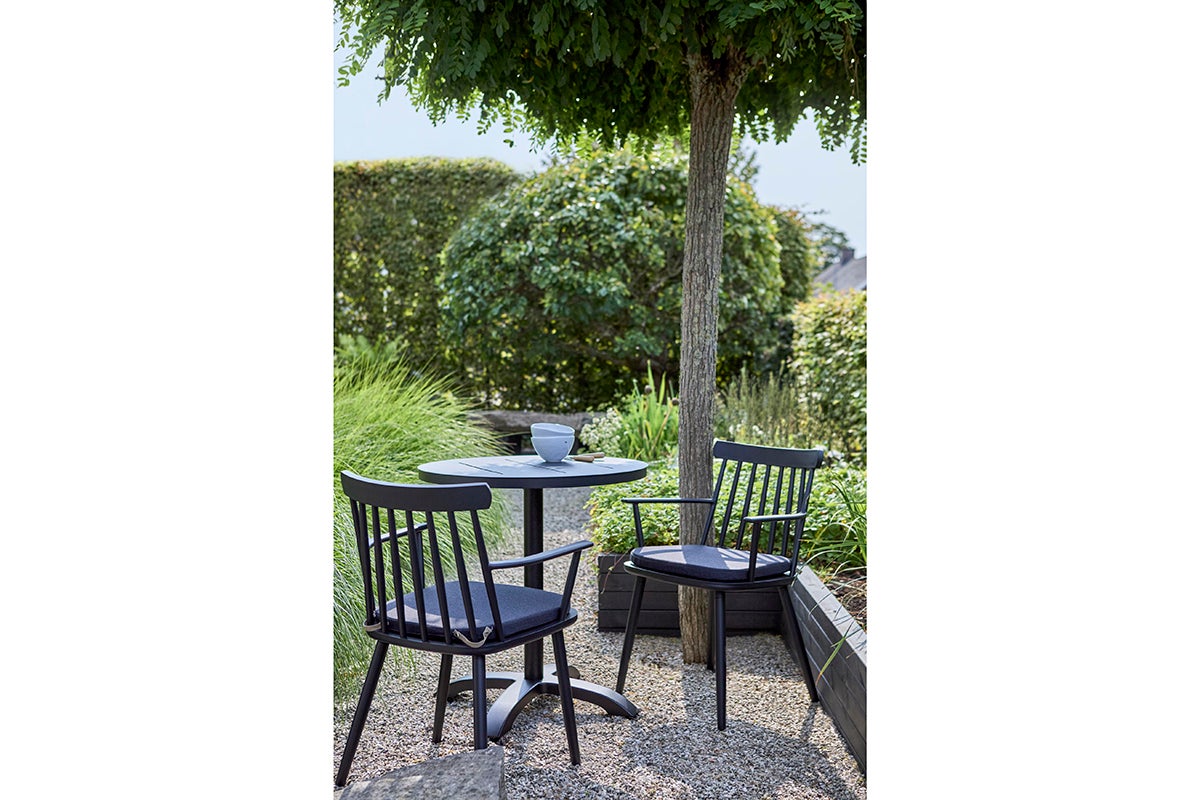 Den klassiske Winsor-stolen henter inspirasjon fra 1940-tallet samtidig som den tilbyr moderne funksjonalitet. Den er laget av pulverlakkert aluminium, passer godt i forskjellige miljøer og gir et tidløst skandinavisk preg til utemiljøet ditt.